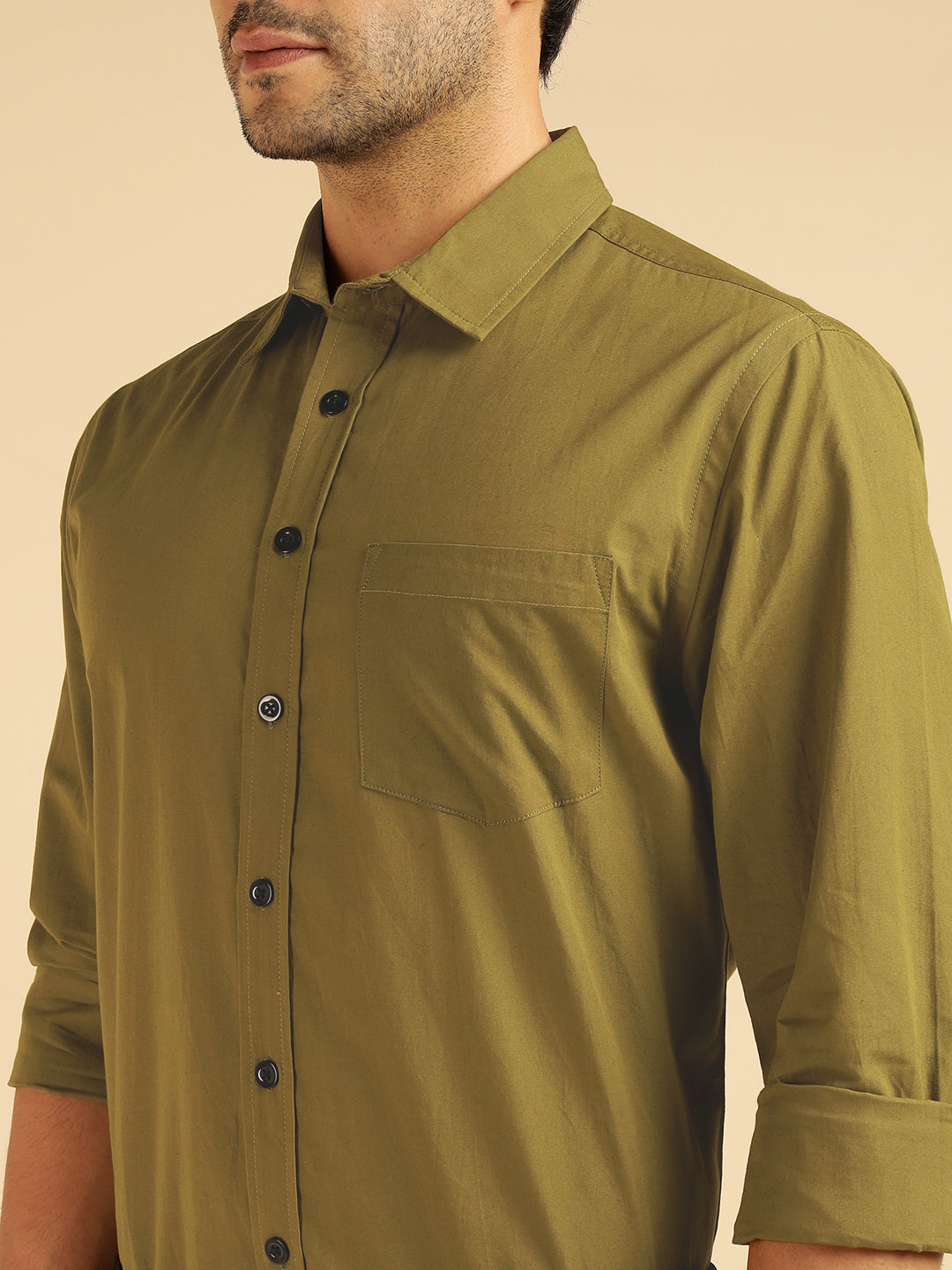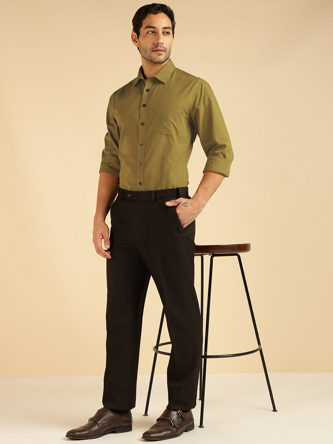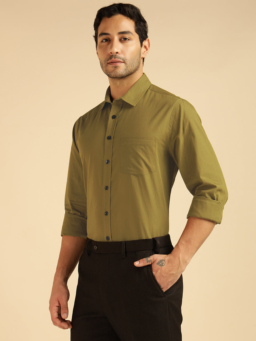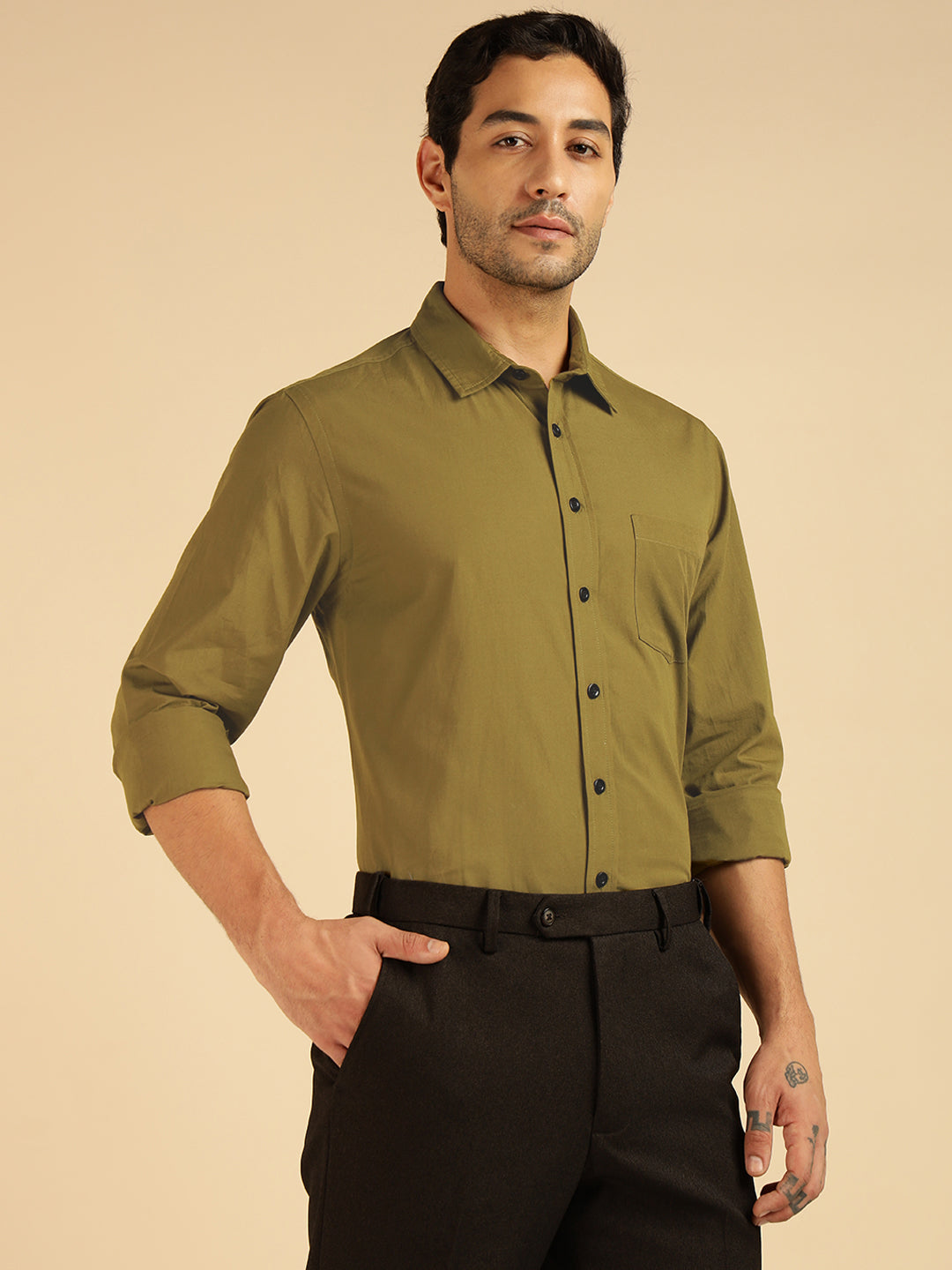 Pure Cotton Solid Olive Green Men Formal Shirt