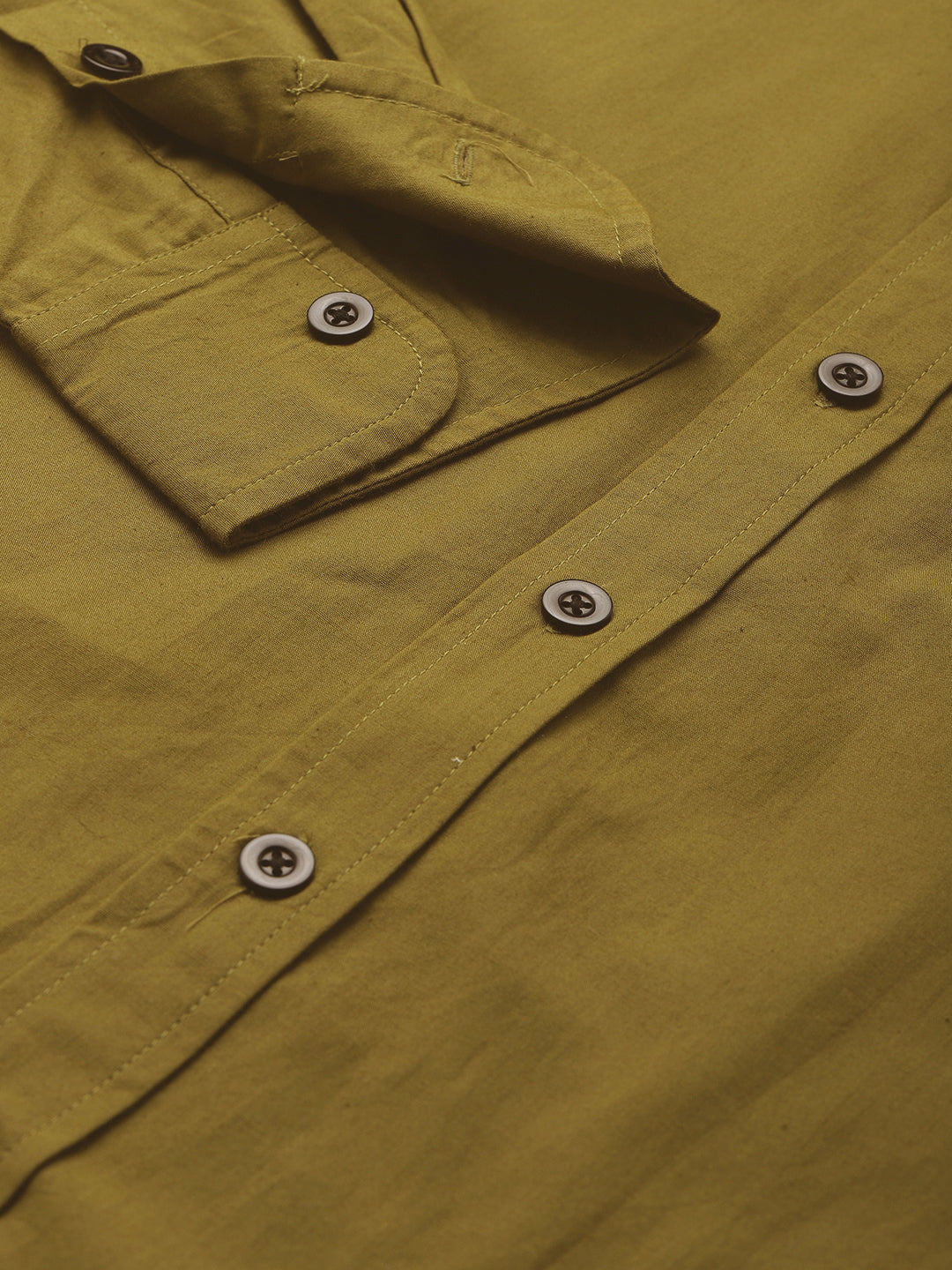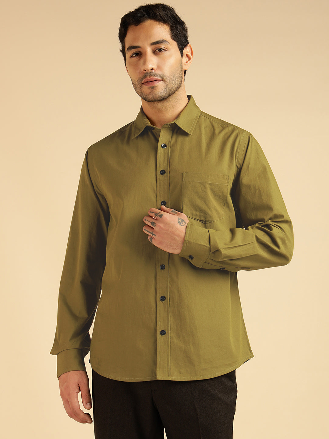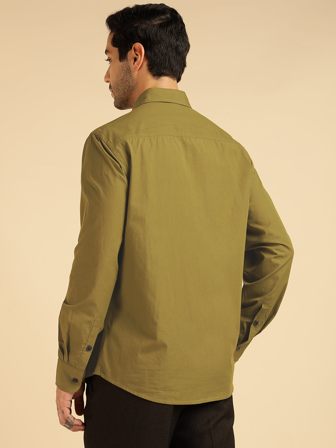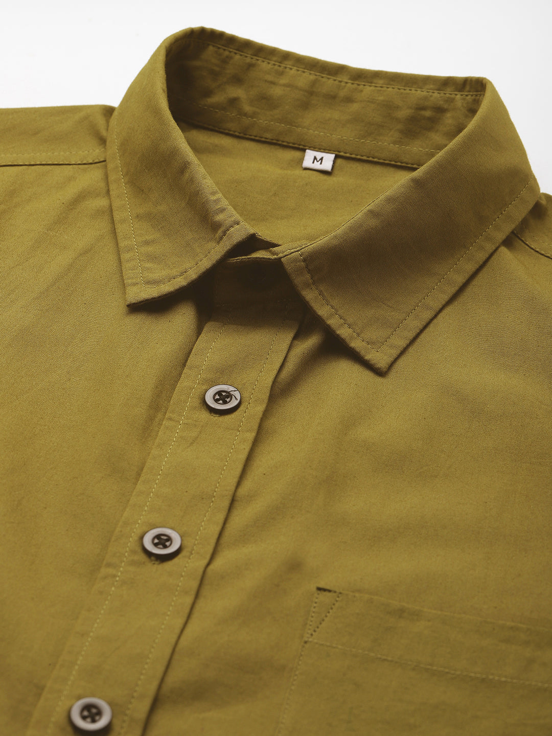 Pure Cotton Solid Olive Green Men Formal Shirt