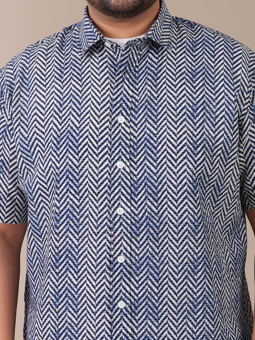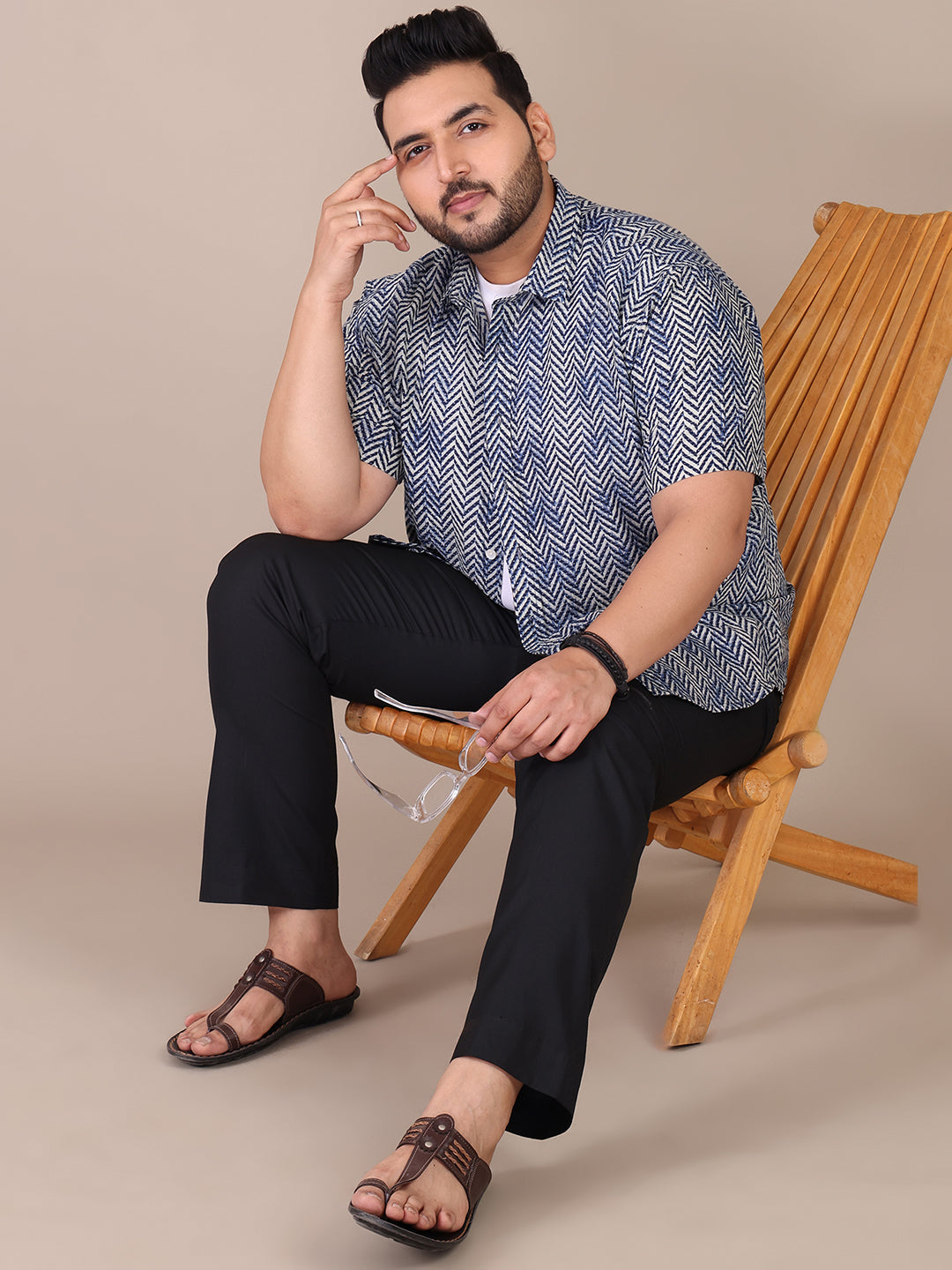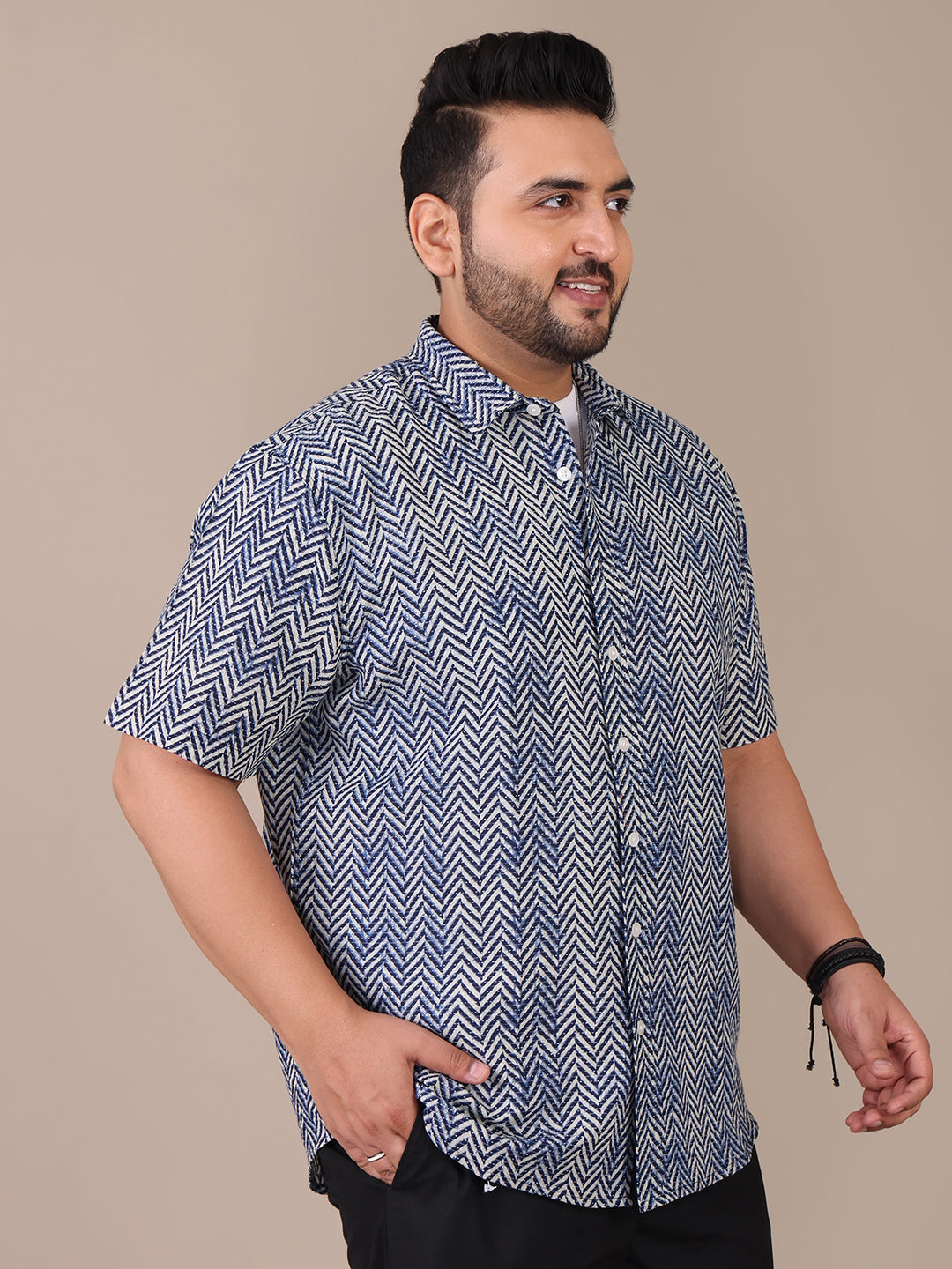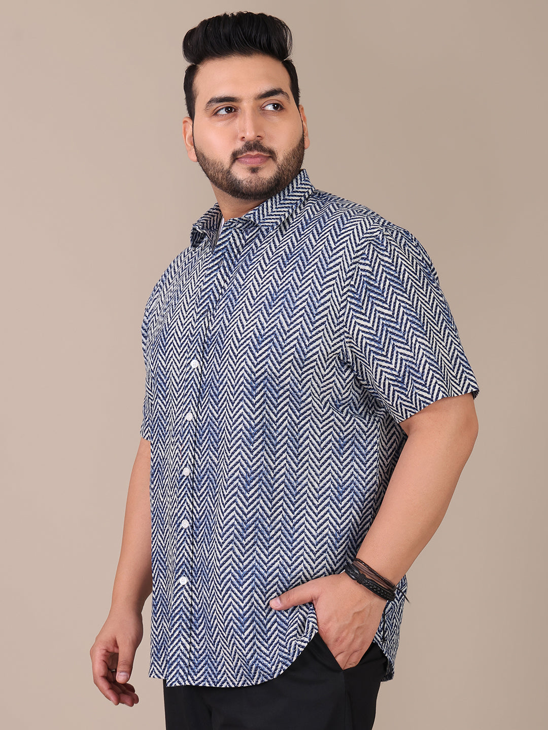 Pure Cotton Zigzag Casual Plus Size Shirt For Men