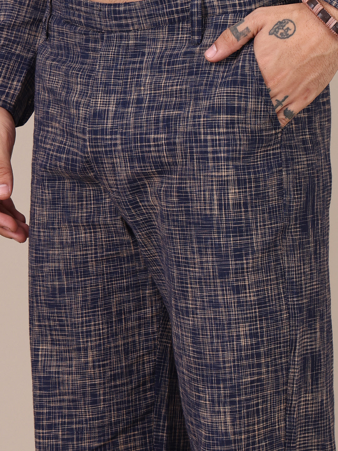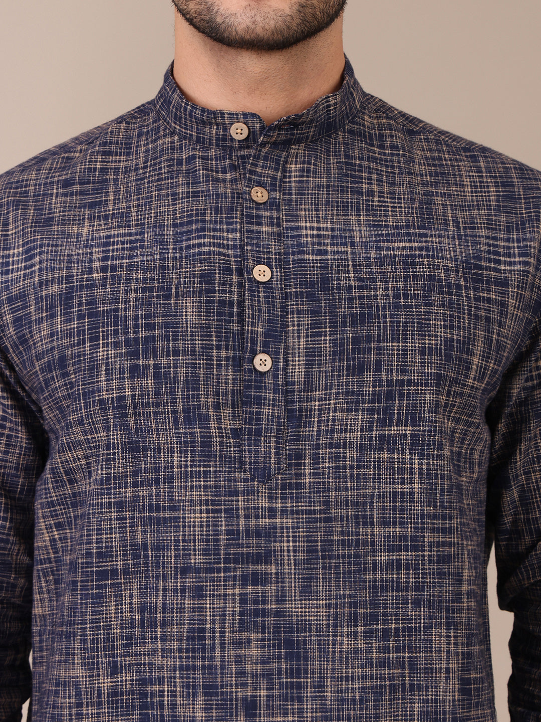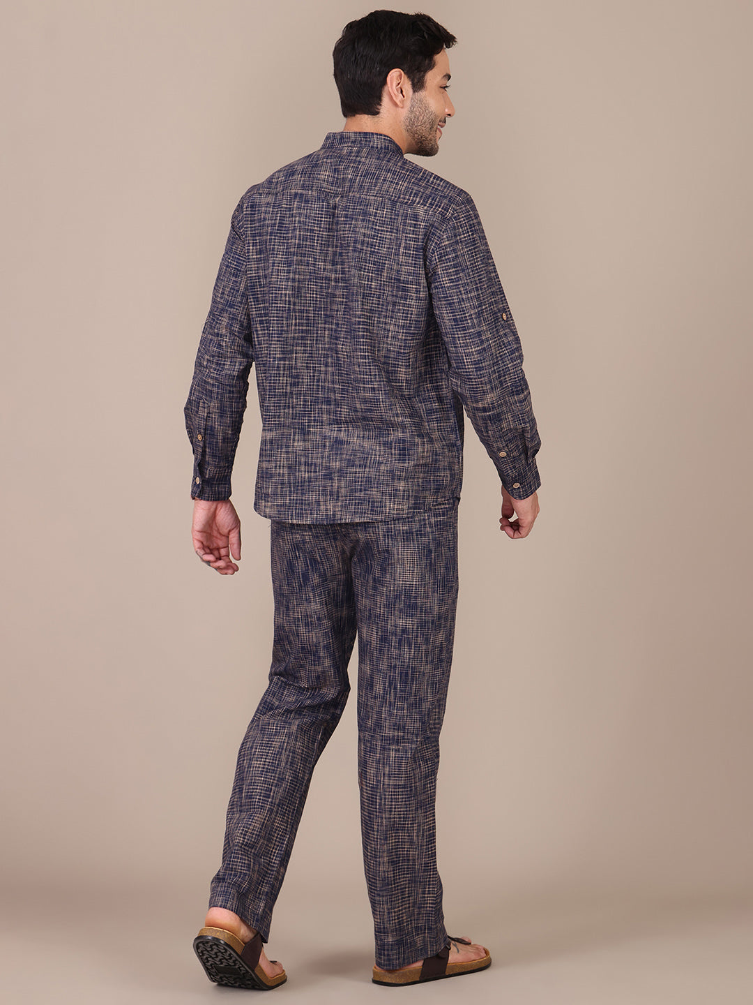 Pure Khadi Navy Blue Mandarin Collar Co-Ord Set For Men