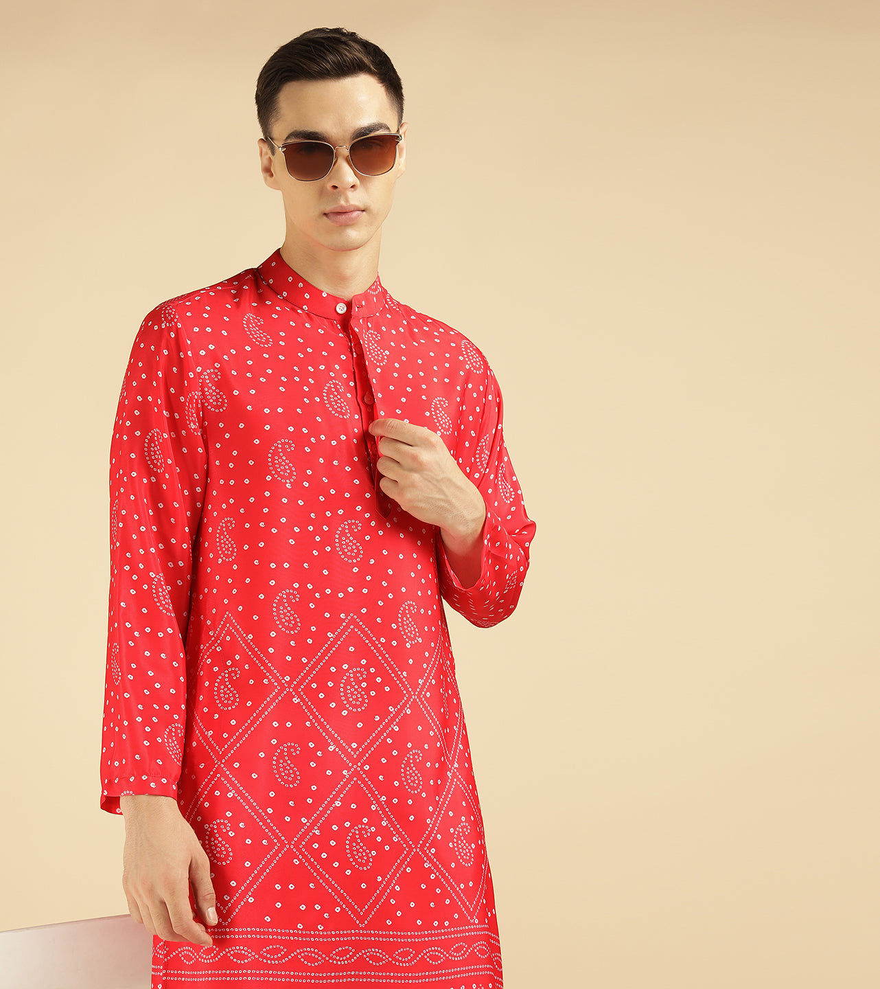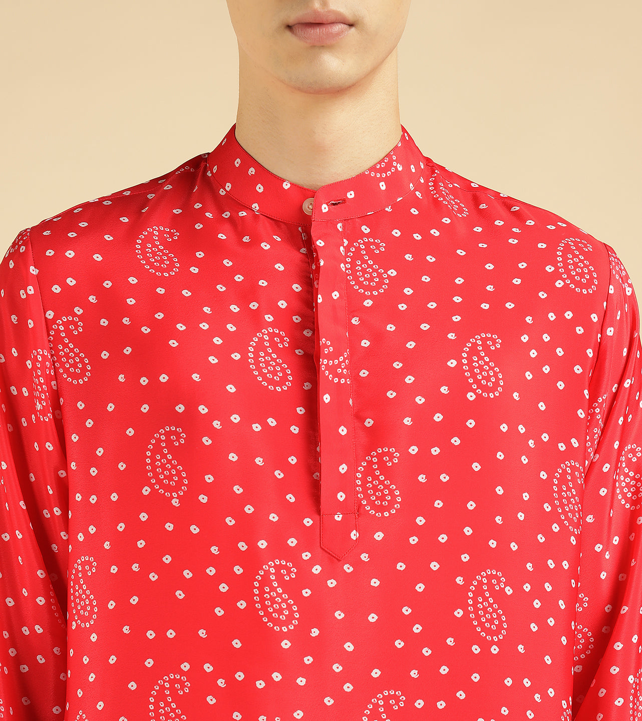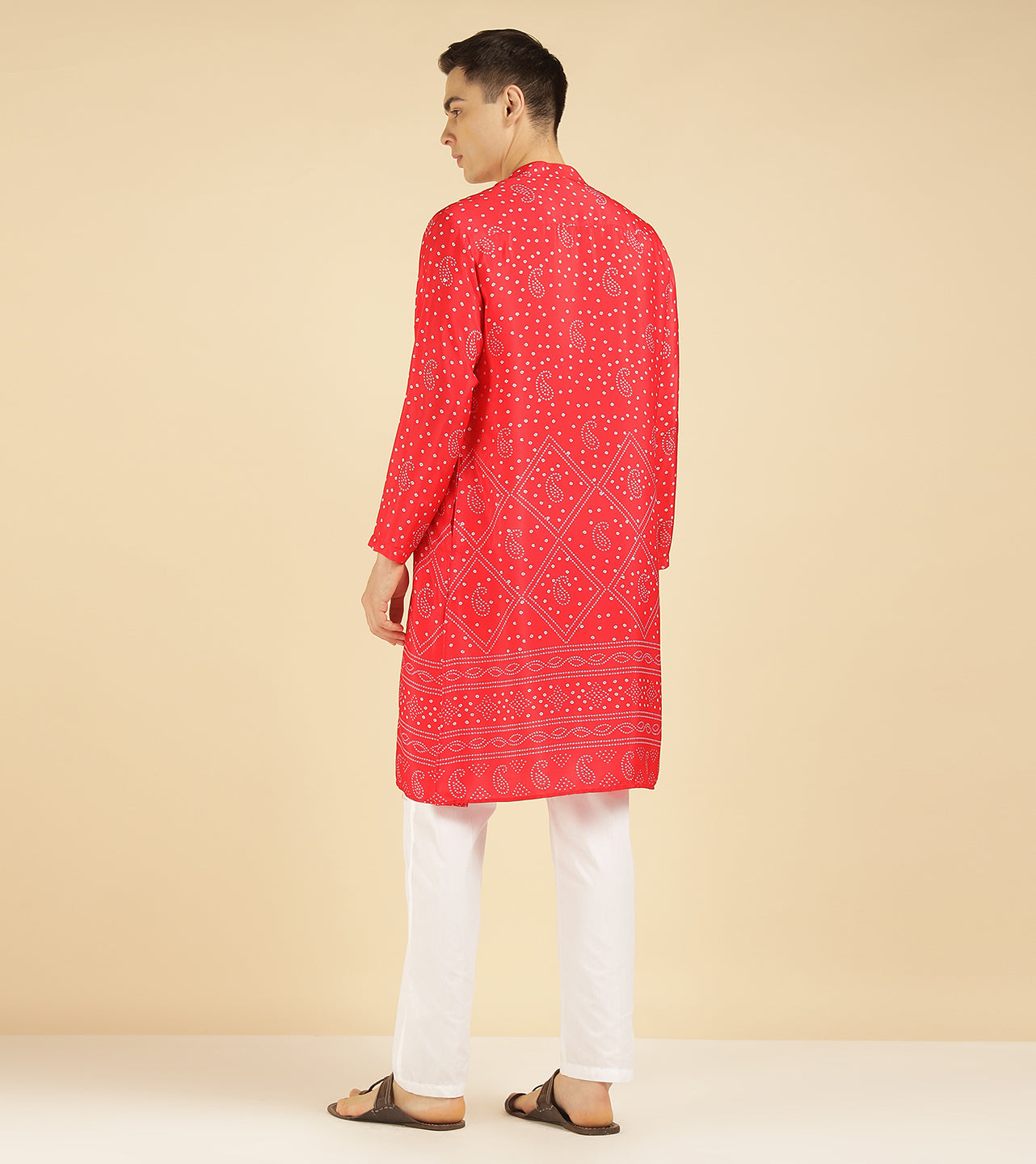 Red Paisley Bandhani Printed Ethnic Kurta For Men
