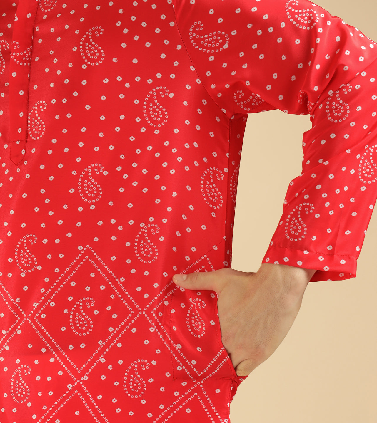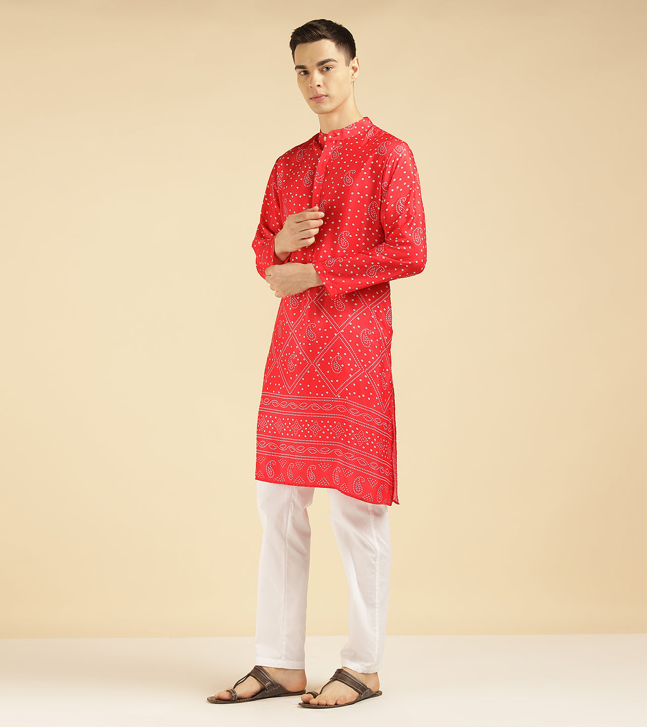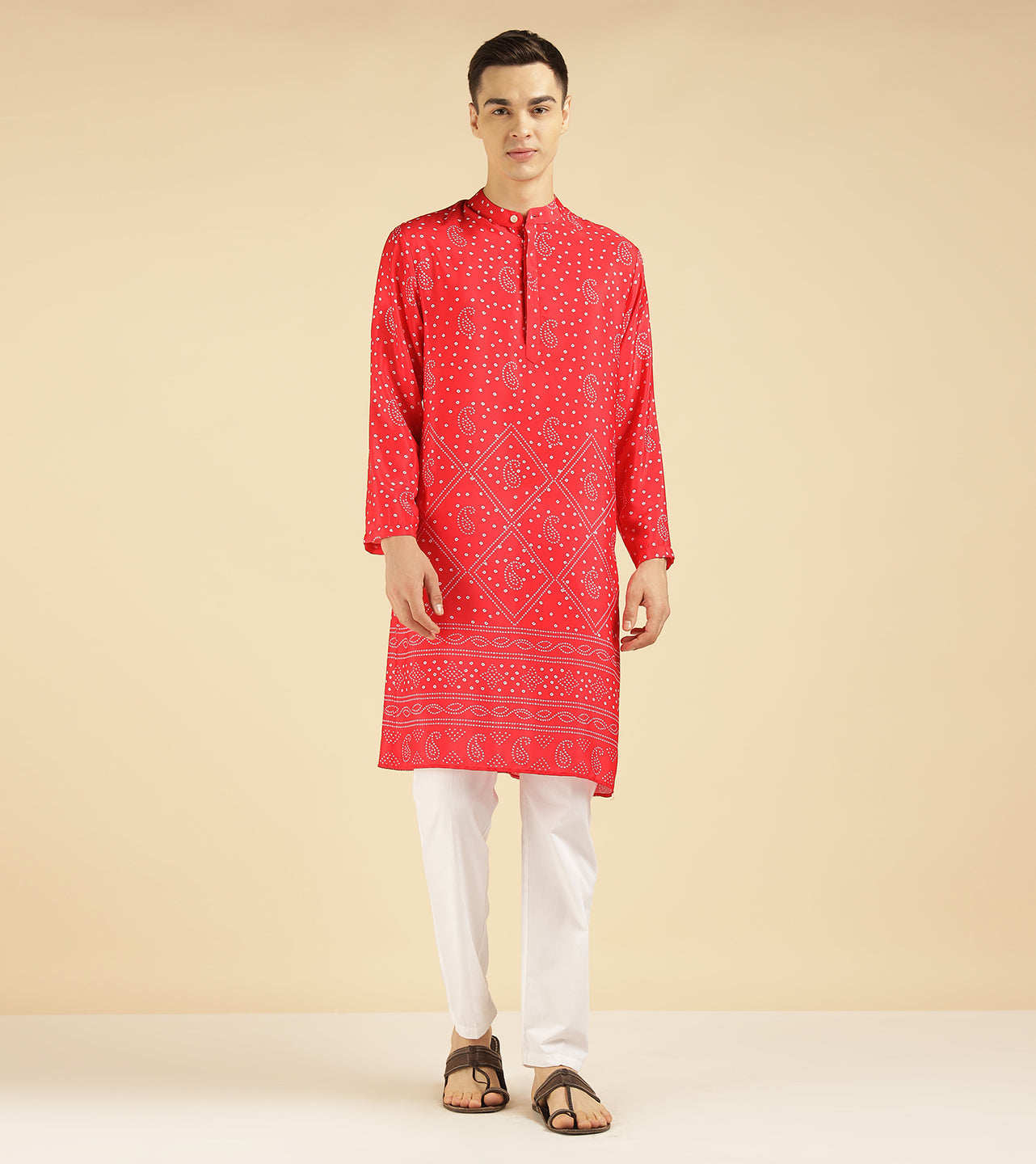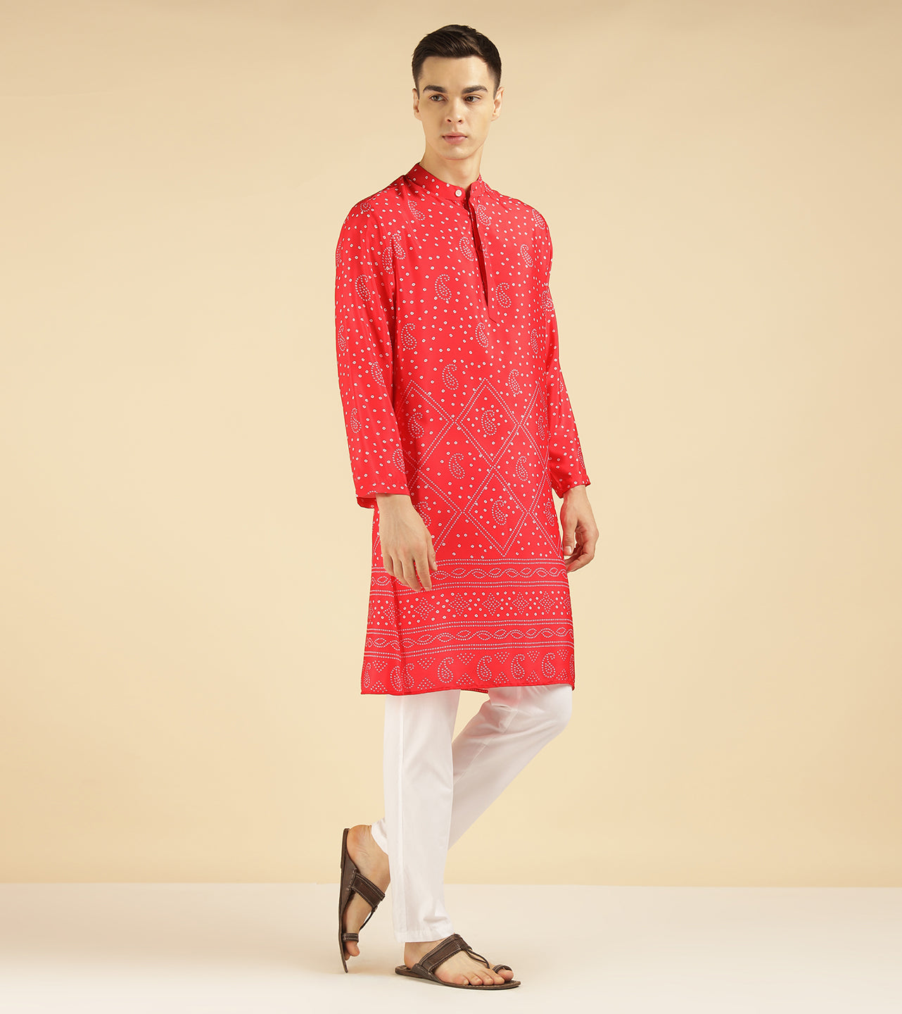 Red Paisley Bandhani Printed Ethnic Kurta For Men