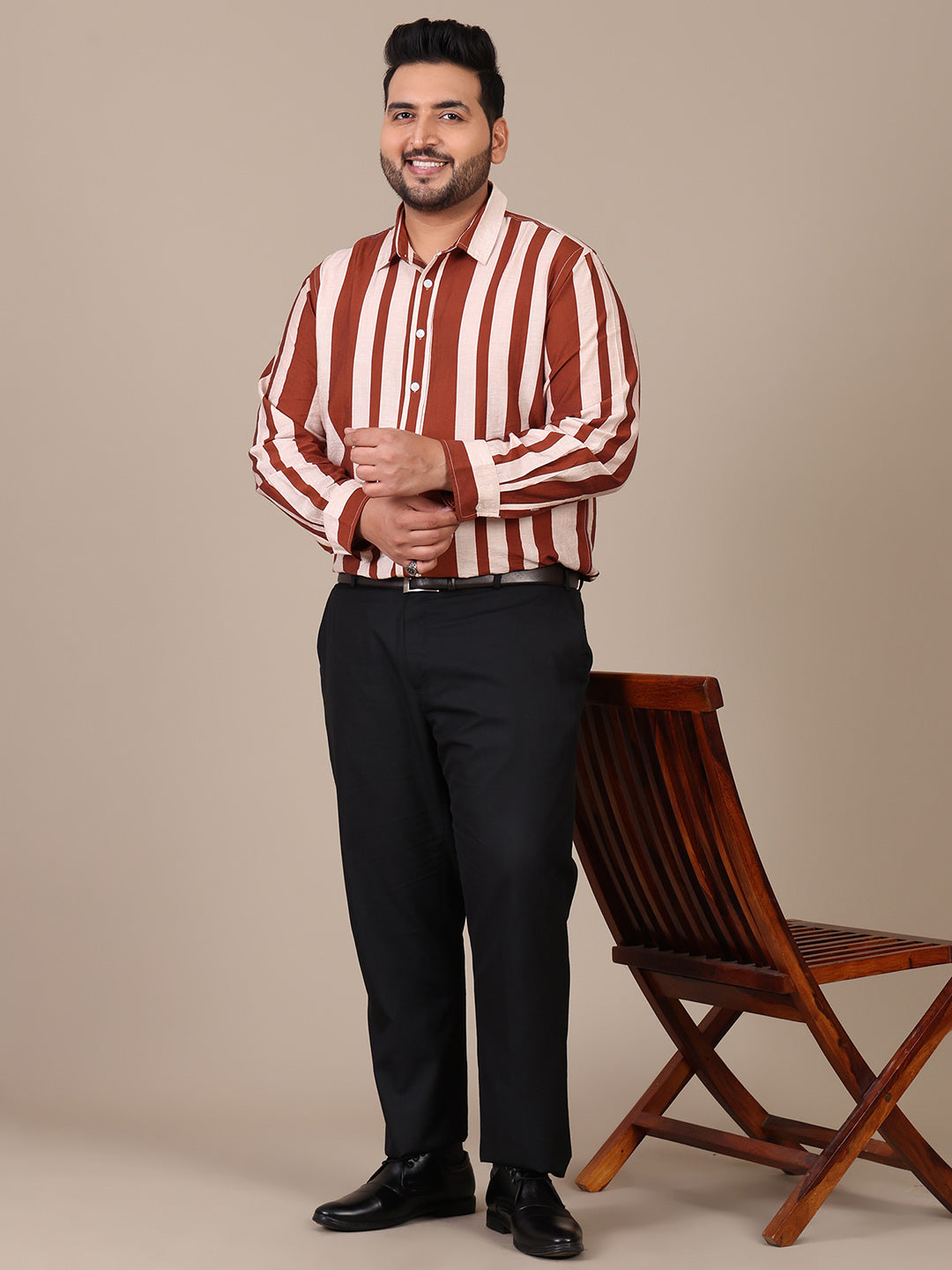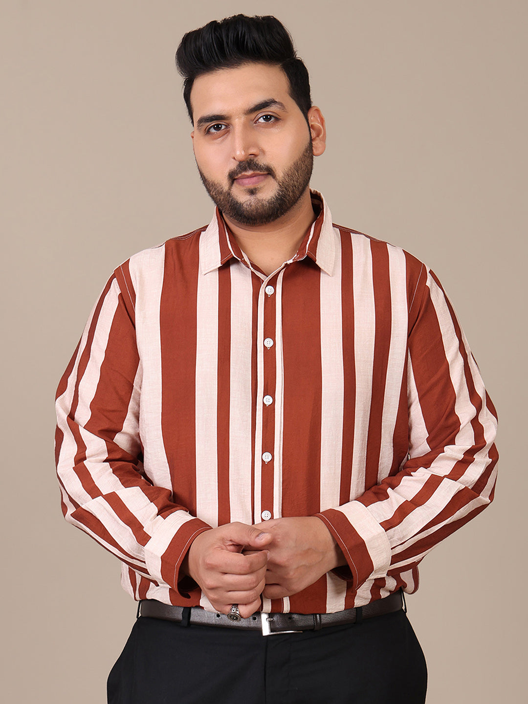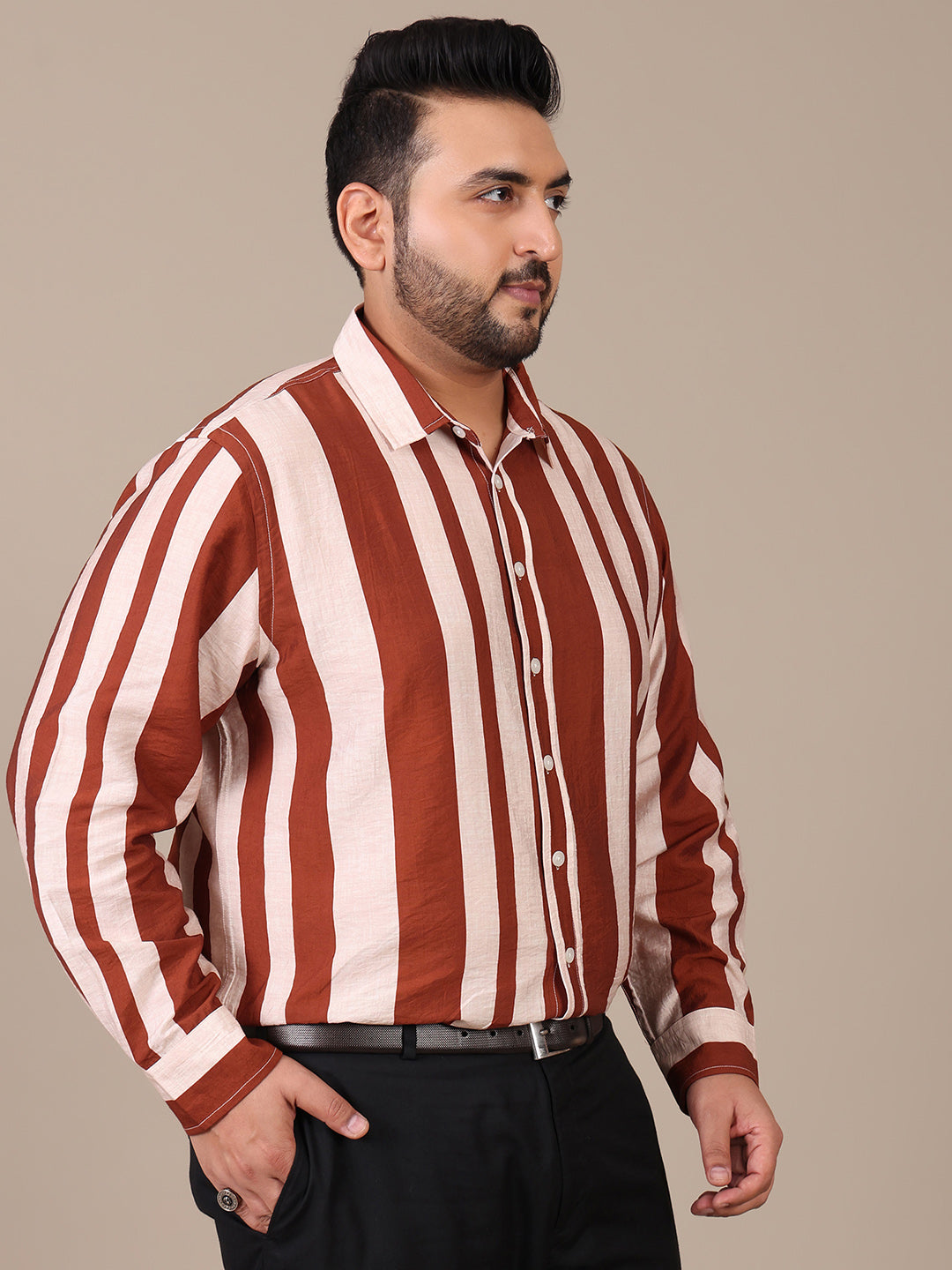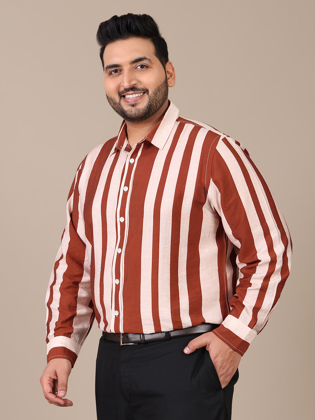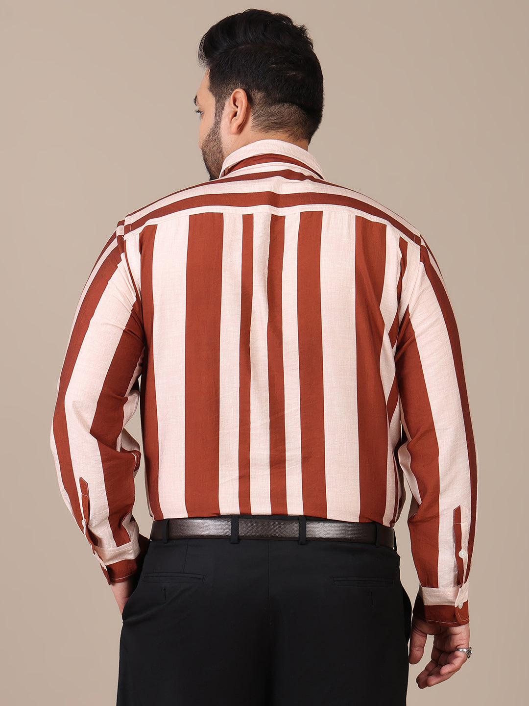 Striped Tan Brown Formal Plus Size Shirt For Men