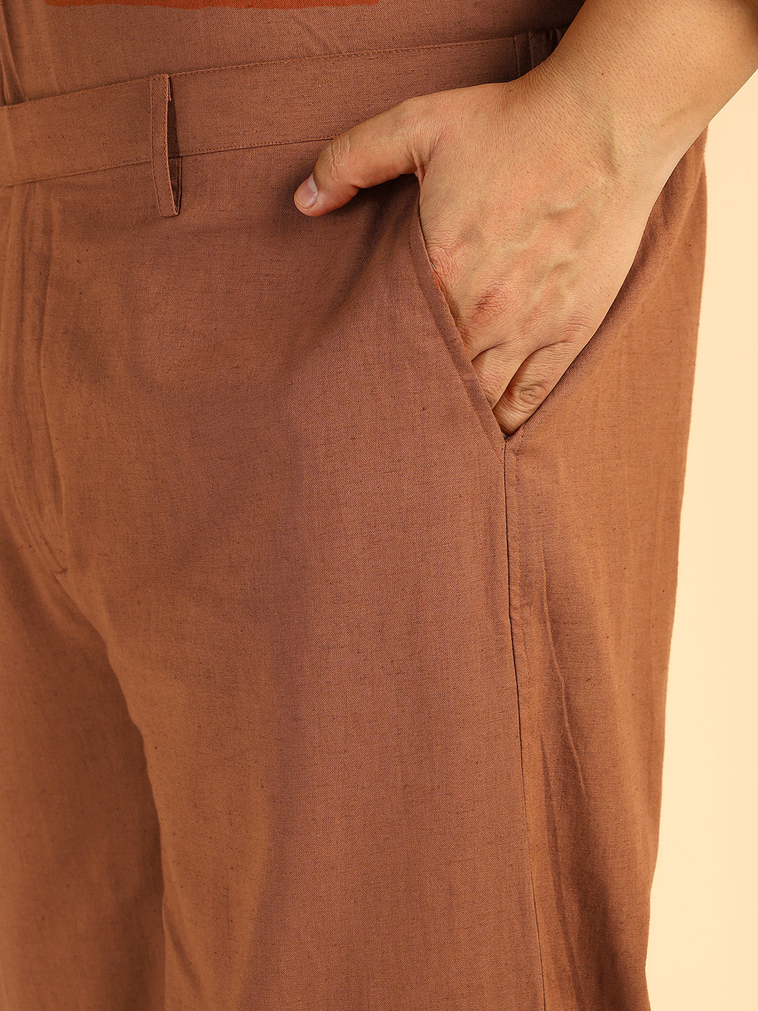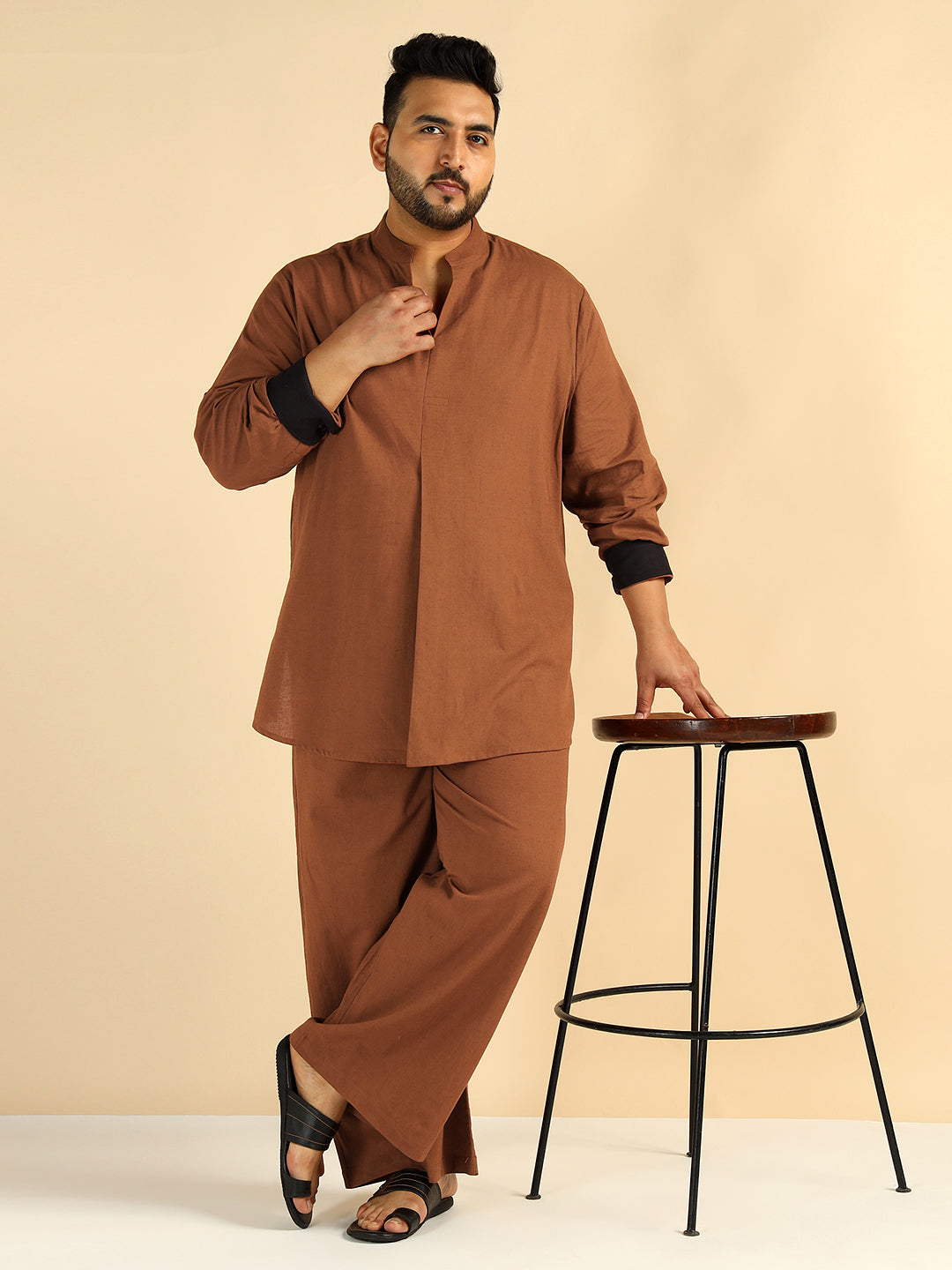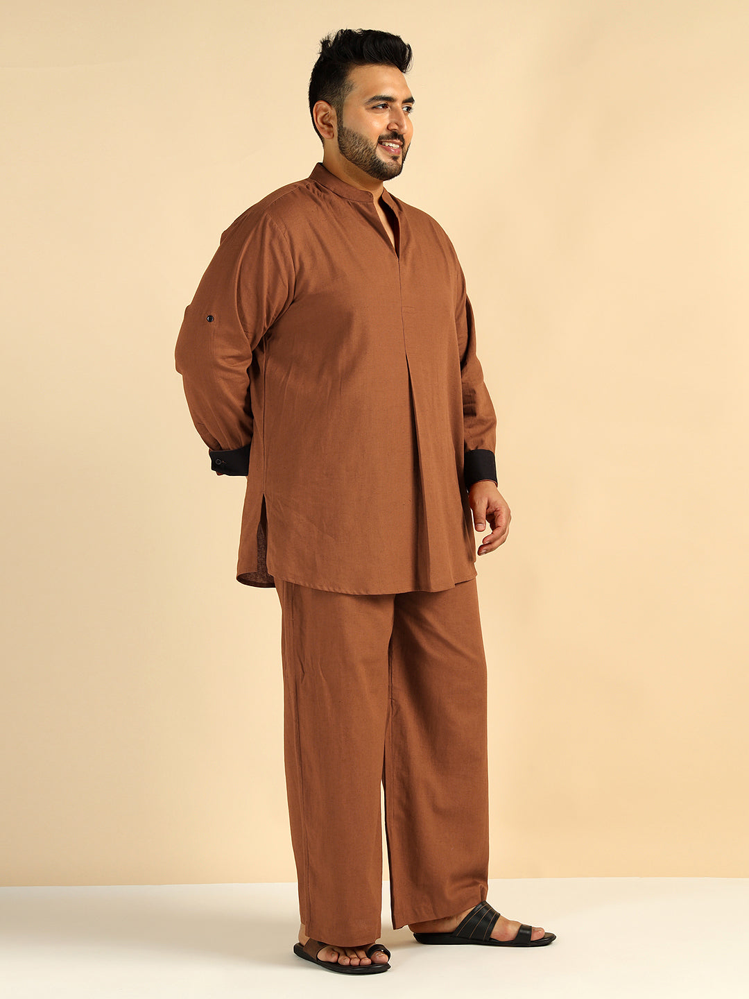 Tan Brown Solid Colour Pure Cotton Plus Size Co-Ord Set For Men