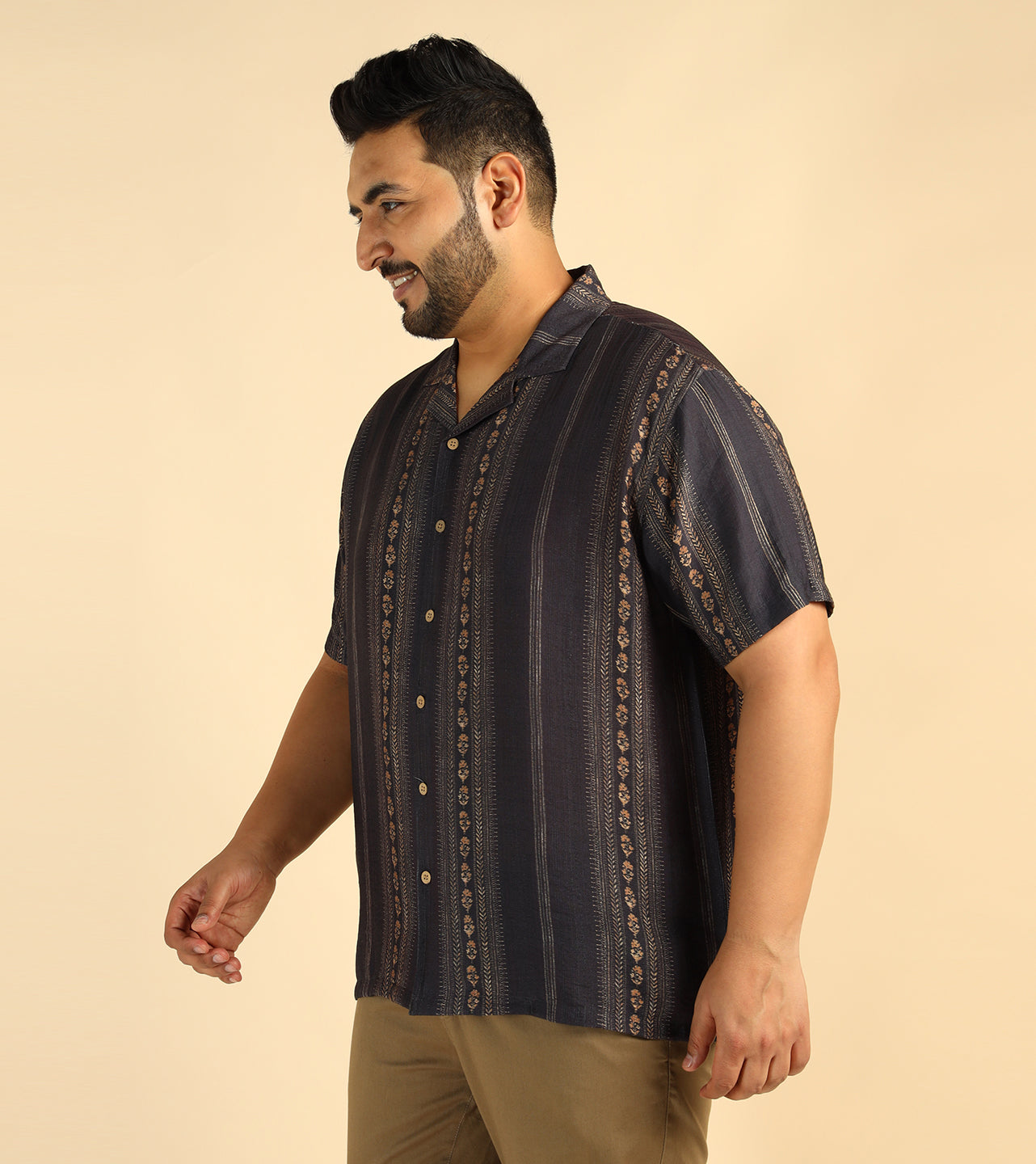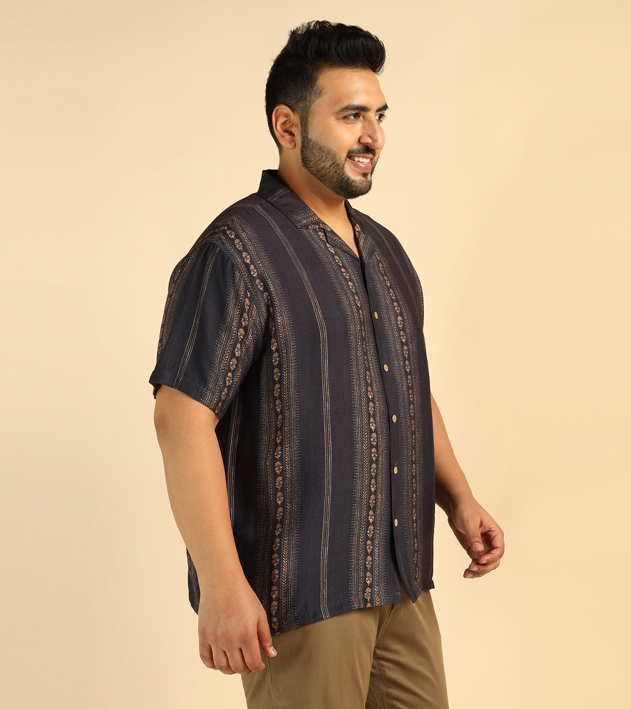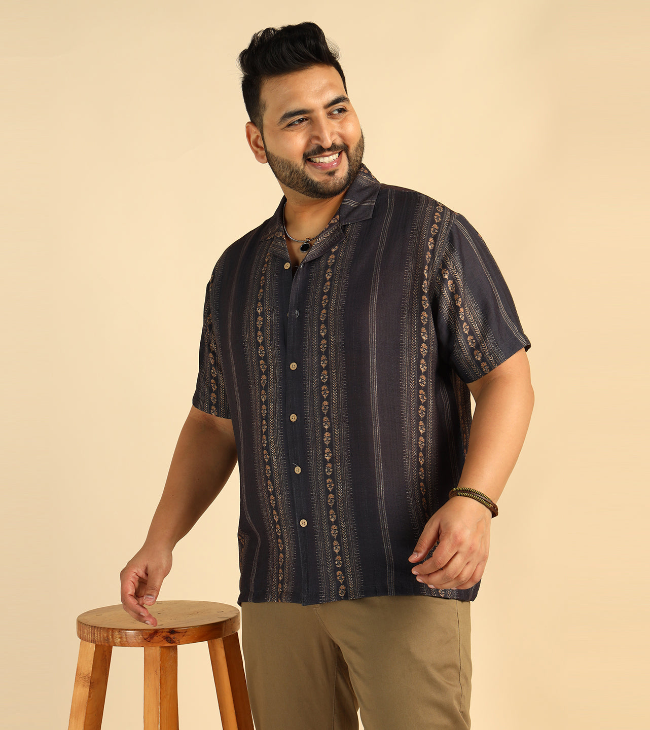 Wine Motif Striped Printed Plus Size Casual Men Shirt