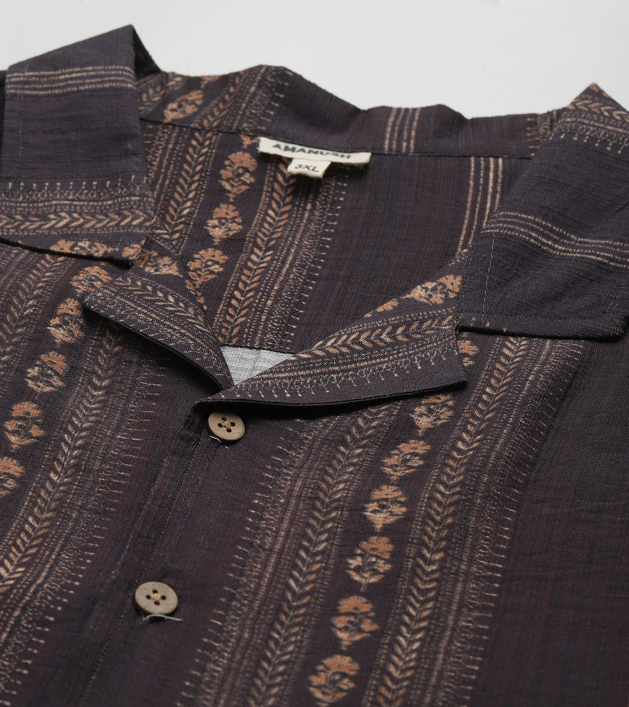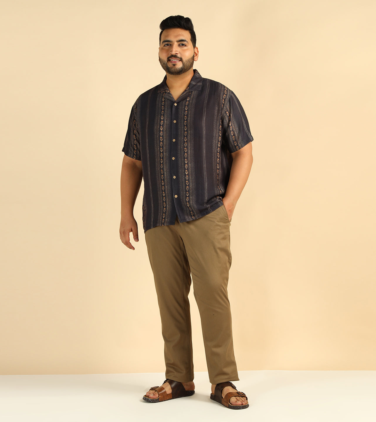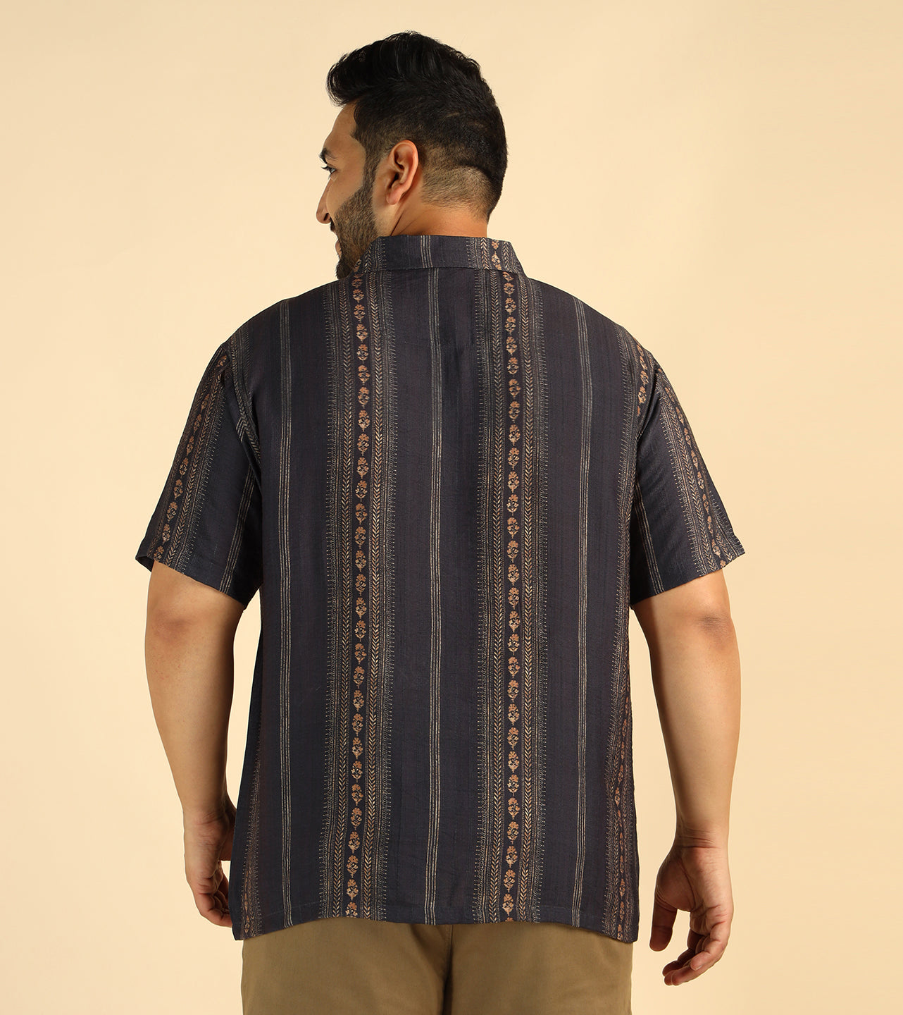 Wine Motif Striped Printed Plus Size Casual Men Shirt