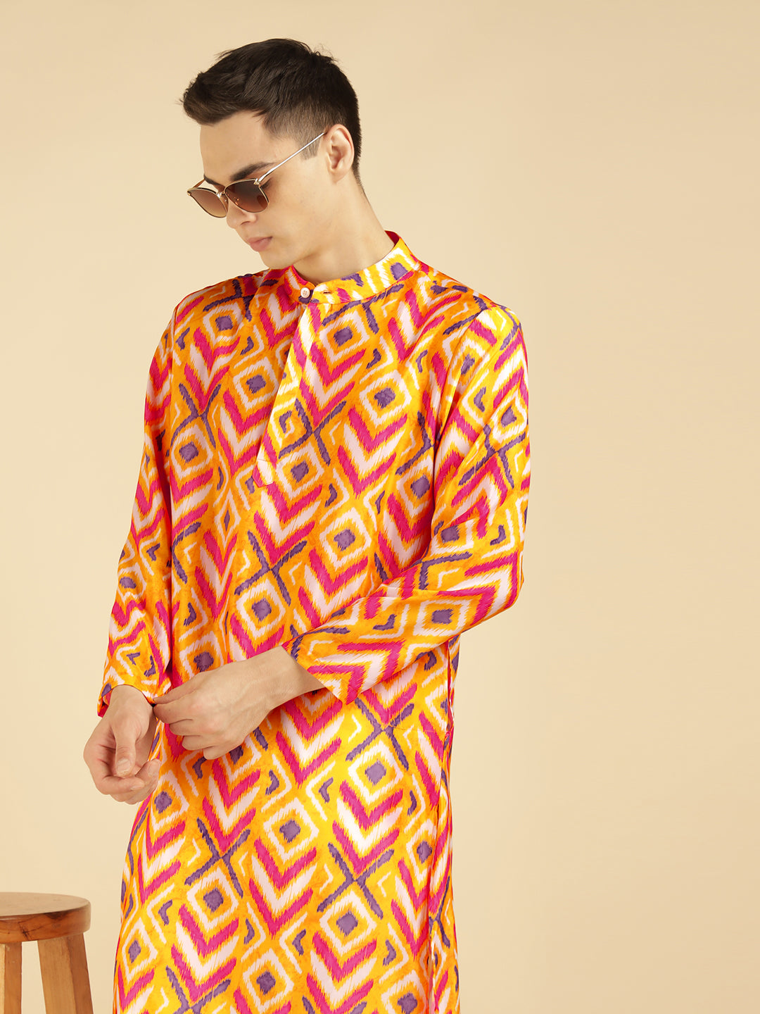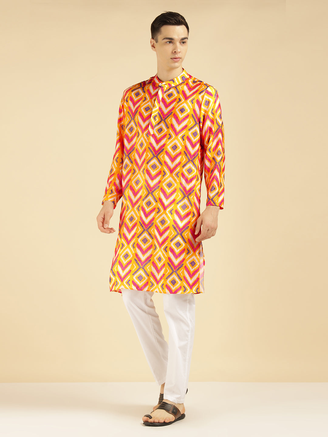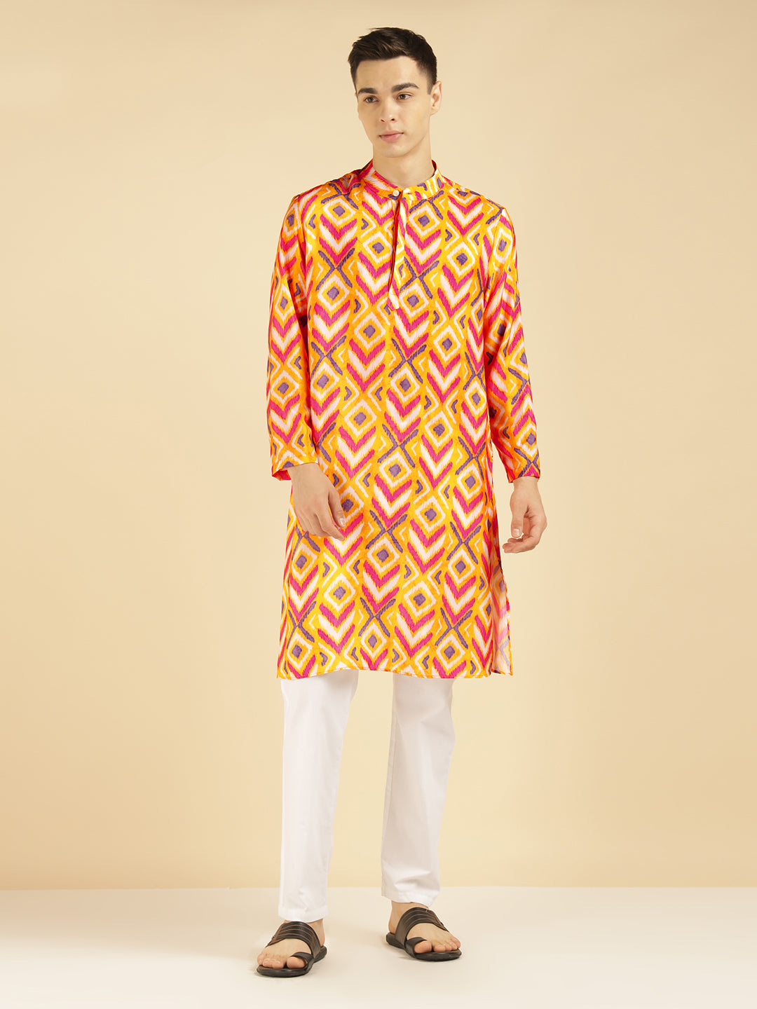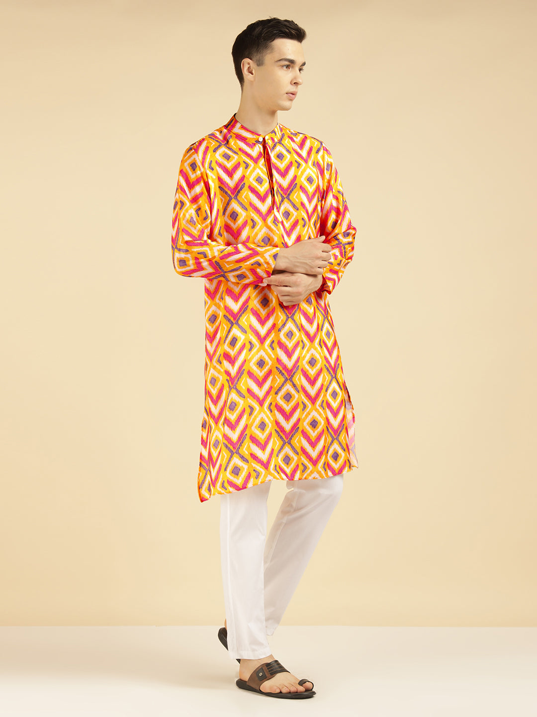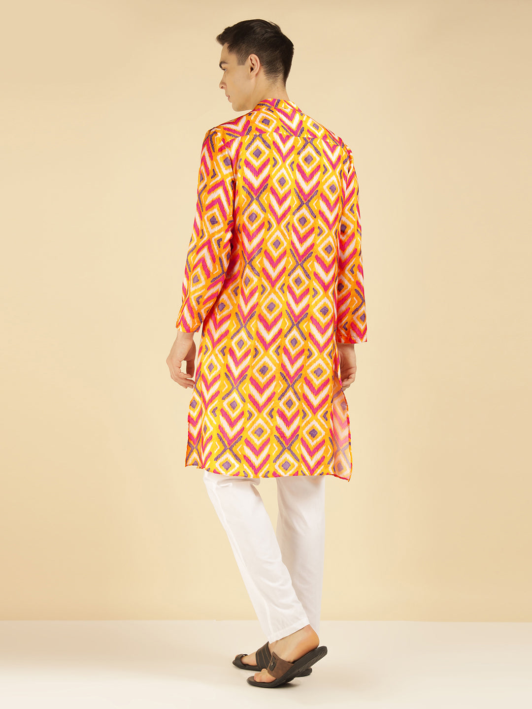 Yellow Ikkat Printed Ethnic Kurta For Men
