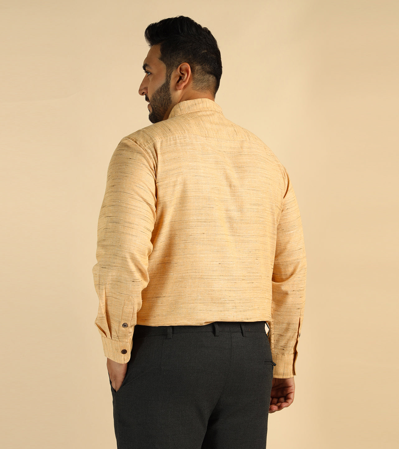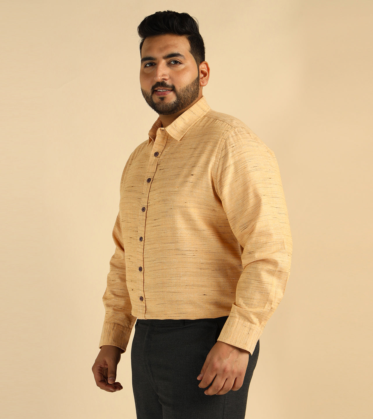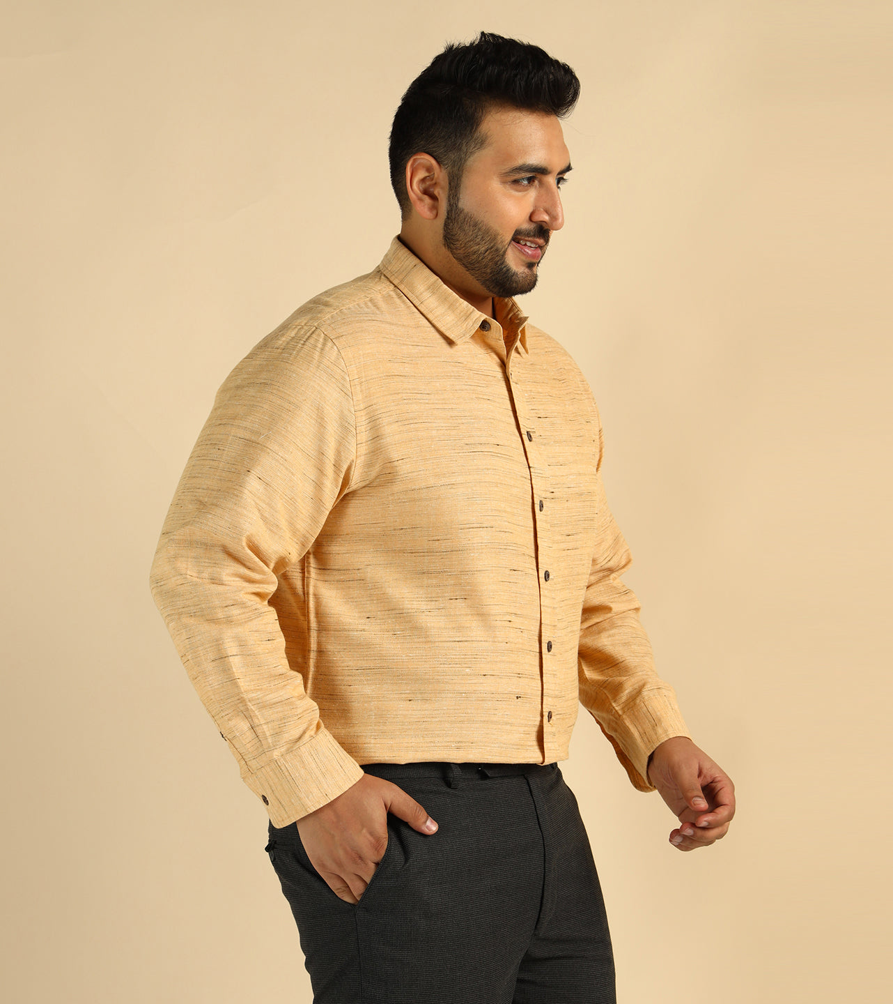 Yellow Khadi Cotton Plus Size Formal Men Shirt
