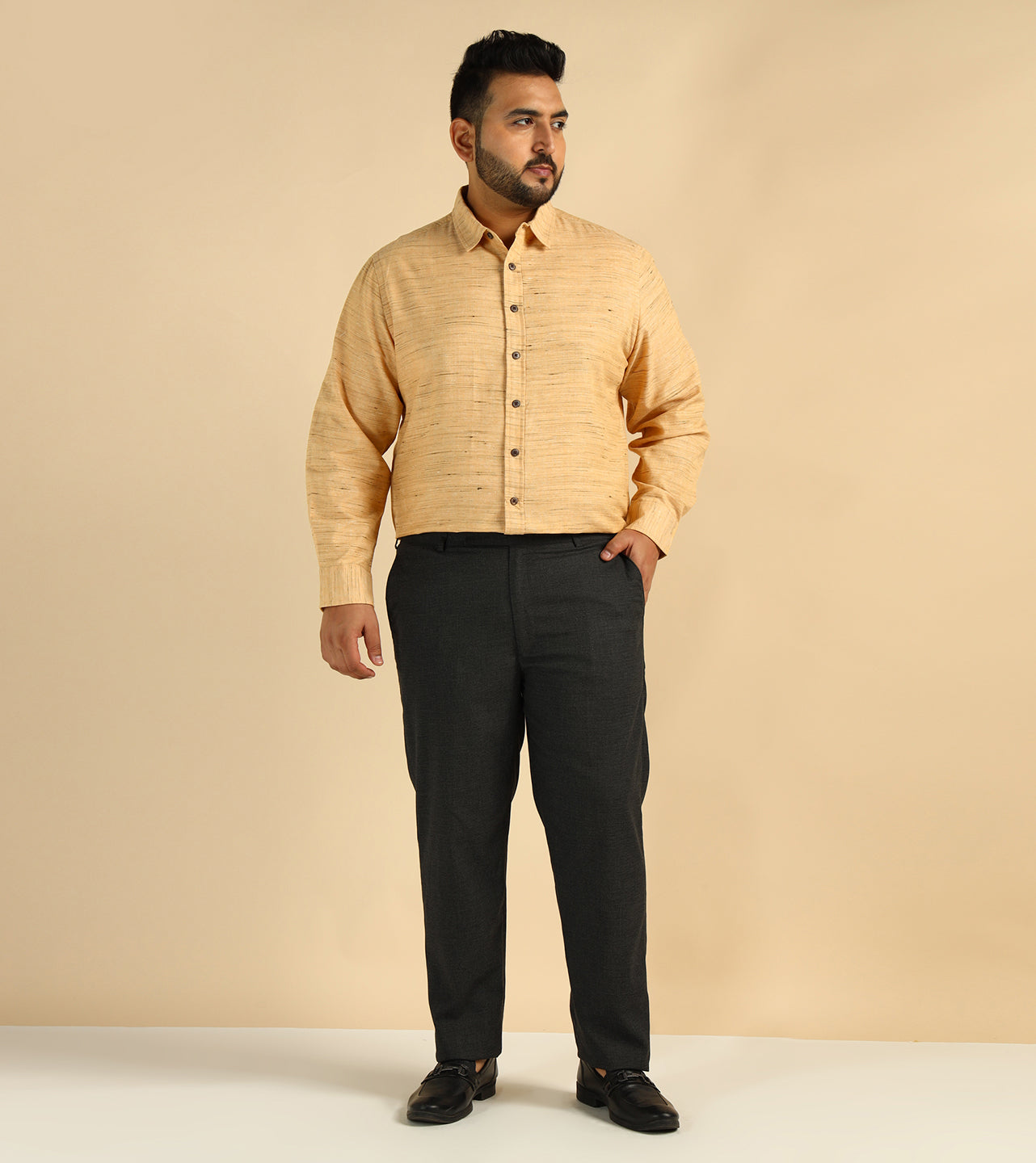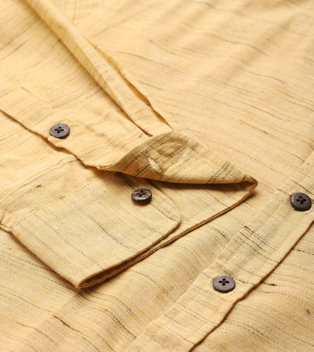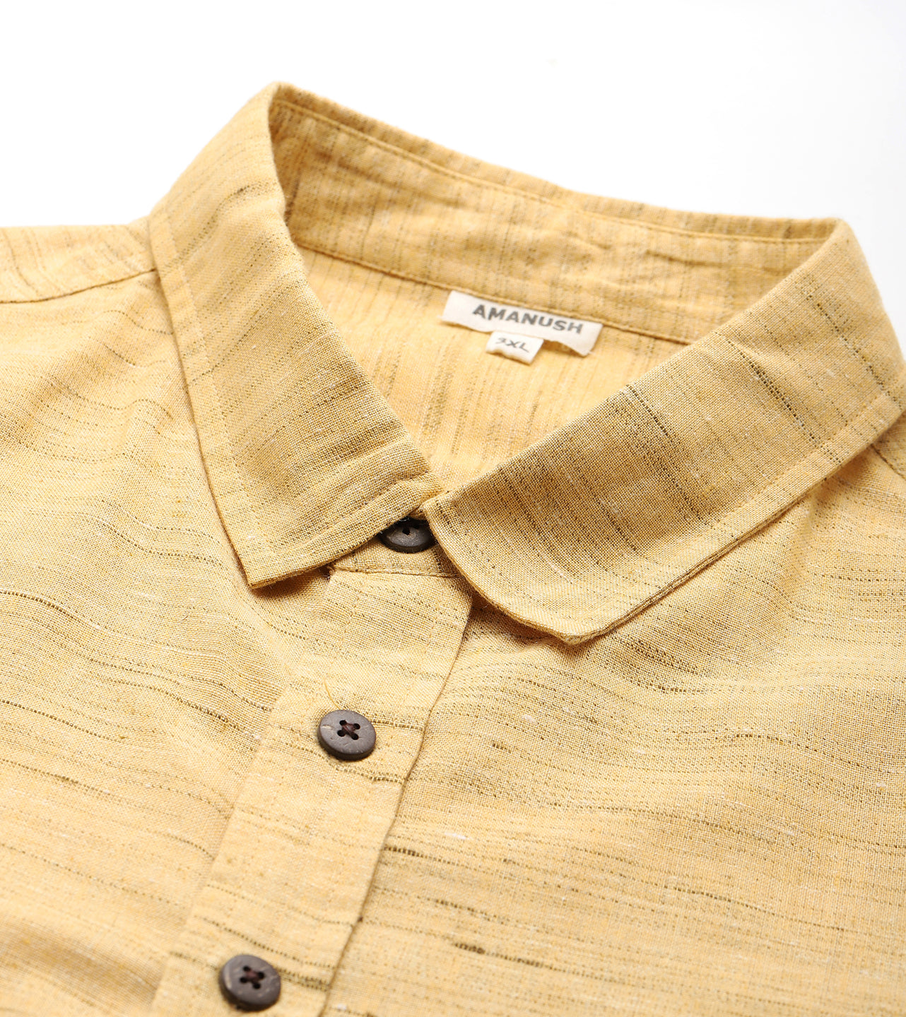 Yellow Khadi Cotton Plus Size Formal Men Shirt