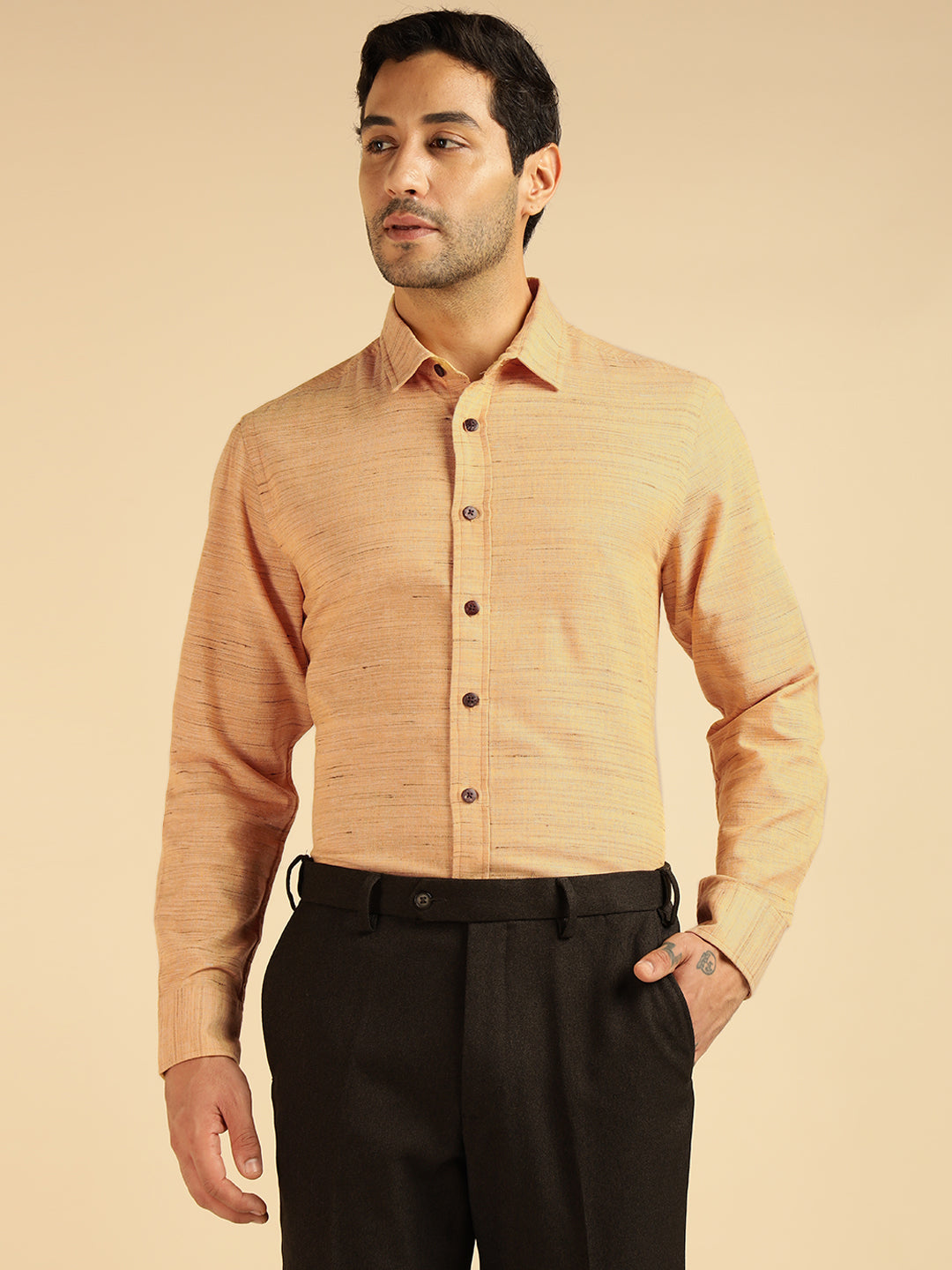 Yellow Khadi Pure Cotton Men Formal Shirt